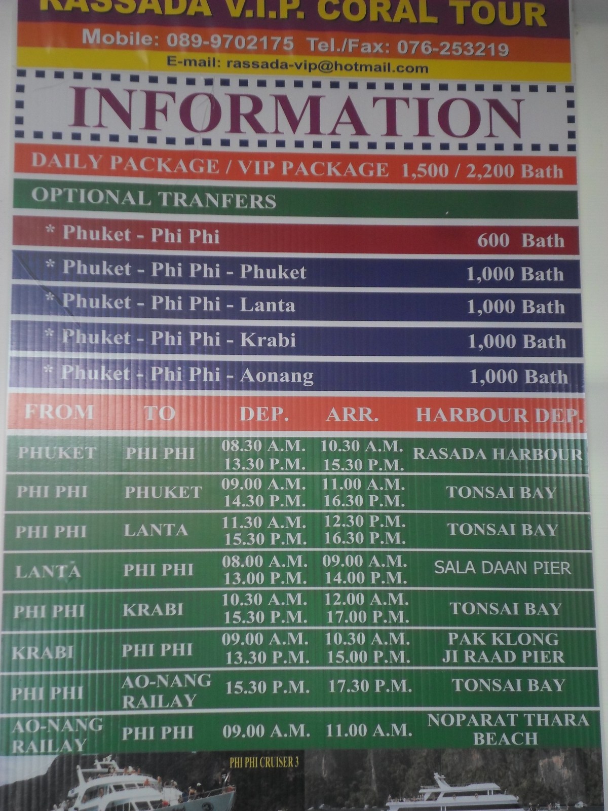 Publié 16 janvier 2013 à 3456 × 4608 dans Thaïlande – Comment se rendre à Koh Phi Phi de Phuket ? Horaires des transfert à Phuket Pier Rassada ‹ Revenir à l’article Laisser un commentaire Annuler la réponse. Δ